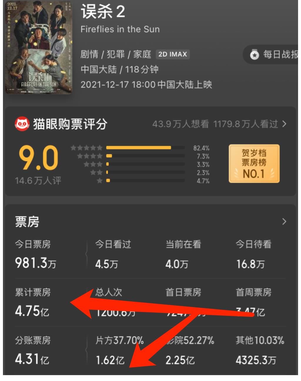 作為繼《唐人街探案》系列和《誤殺》之后由陳思誠監(jiān)制的又一作品,該片口碑雖然不及《誤殺1》,不過,票房表現(xiàn)卻非常亮眼,截至發(fā)稿前,該片上映7天票房4.75億,預(yù)測票房為10.67億,不禁讓很多觀眾感到,陳思誠和肖央一出手就是王炸。
