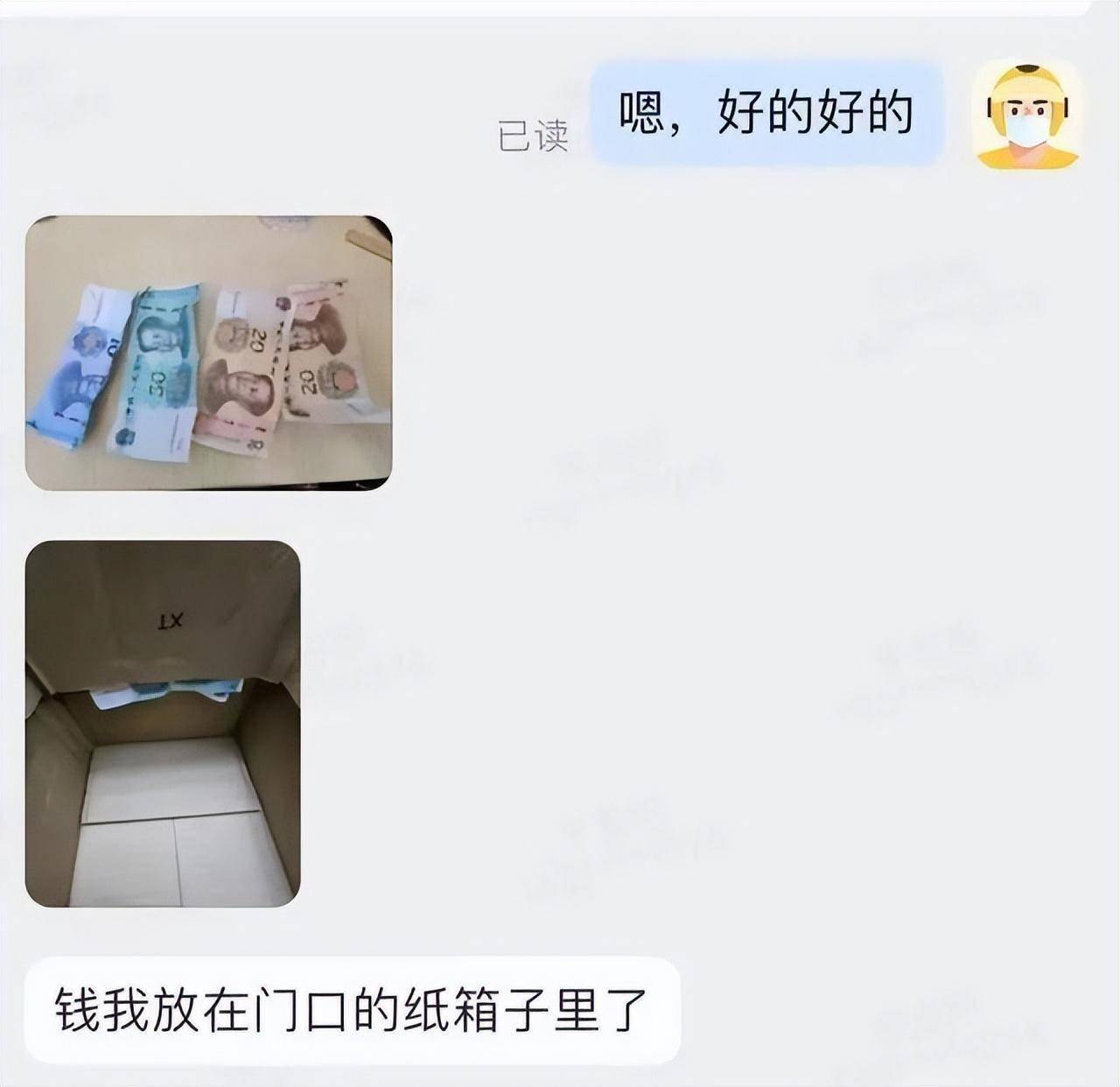 在房間門口紙箱中留下100元現金