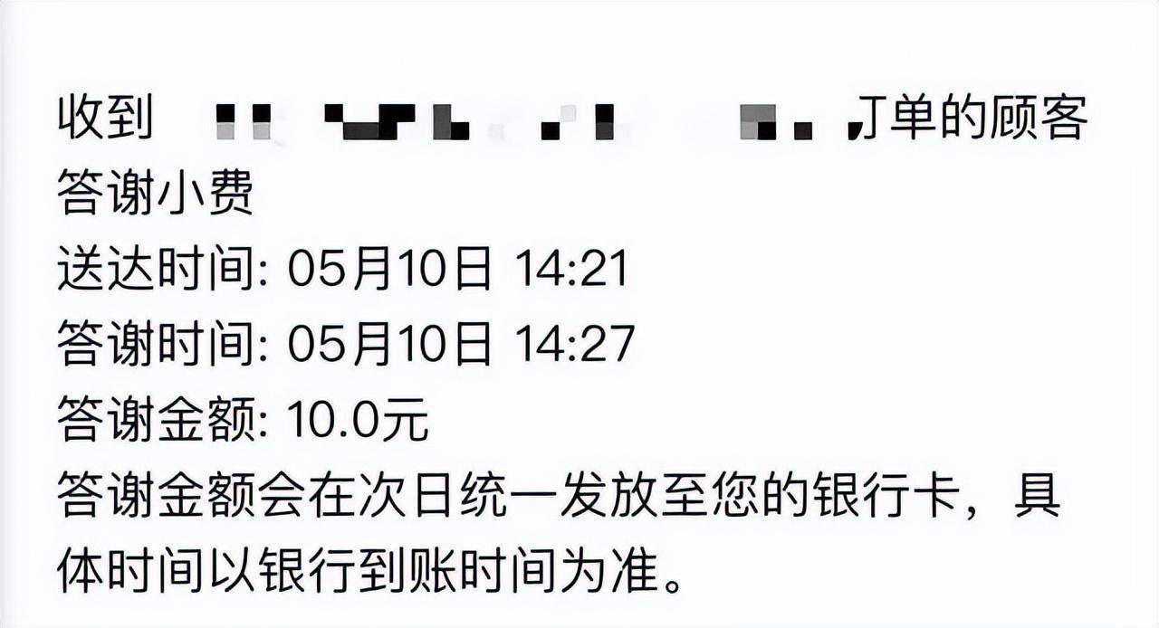 一名外賣員稱其收到110塊錢打賞