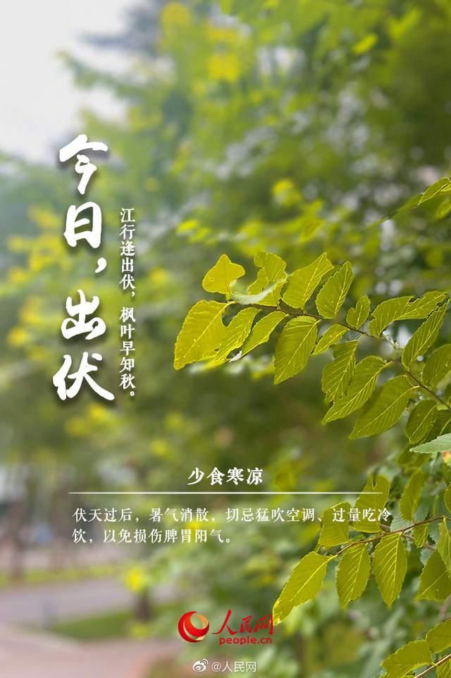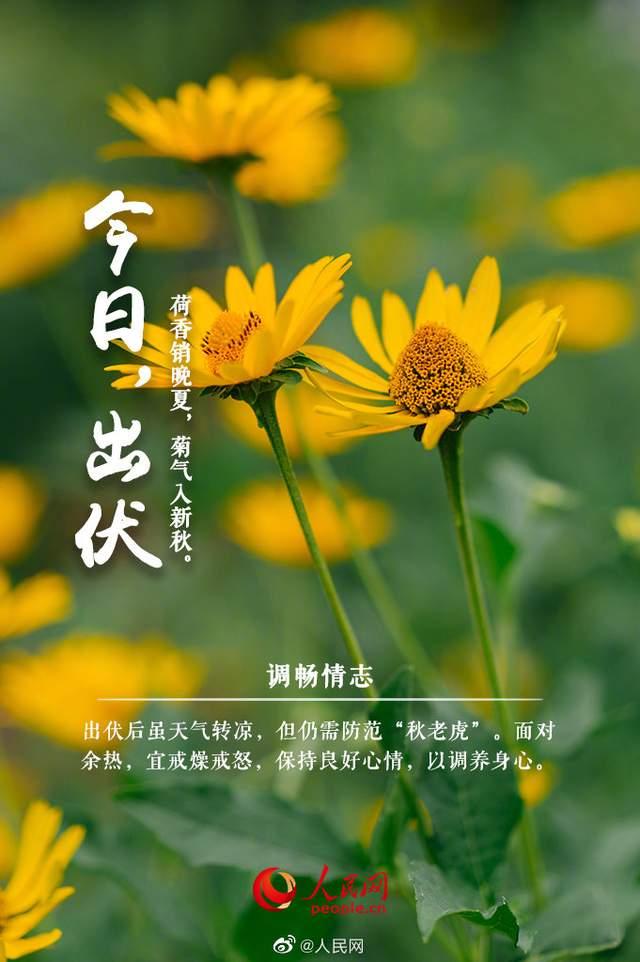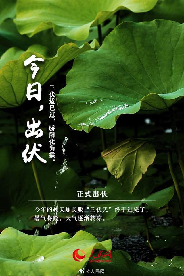 人民網(wǎng)訊 從7月16日到8月24日,長(zhǎng)達(dá)40天的加長(zhǎng)版“三伏天”終于結(jié)束,今天正式出伏。伏天過(guò)后,暑熱將漸漸退散,天氣將逐步?jīng)鏊?。氣候的變化也將給人們的起居作息、飲食習(xí)慣帶來(lái)改變。